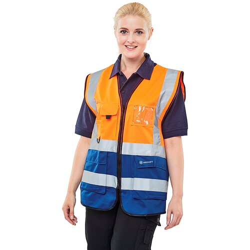 BEESWIFT HVWCTTORN TWO TONE HI-VIS EXECUTIVE WAISTCOAT ORANGE/NAVY