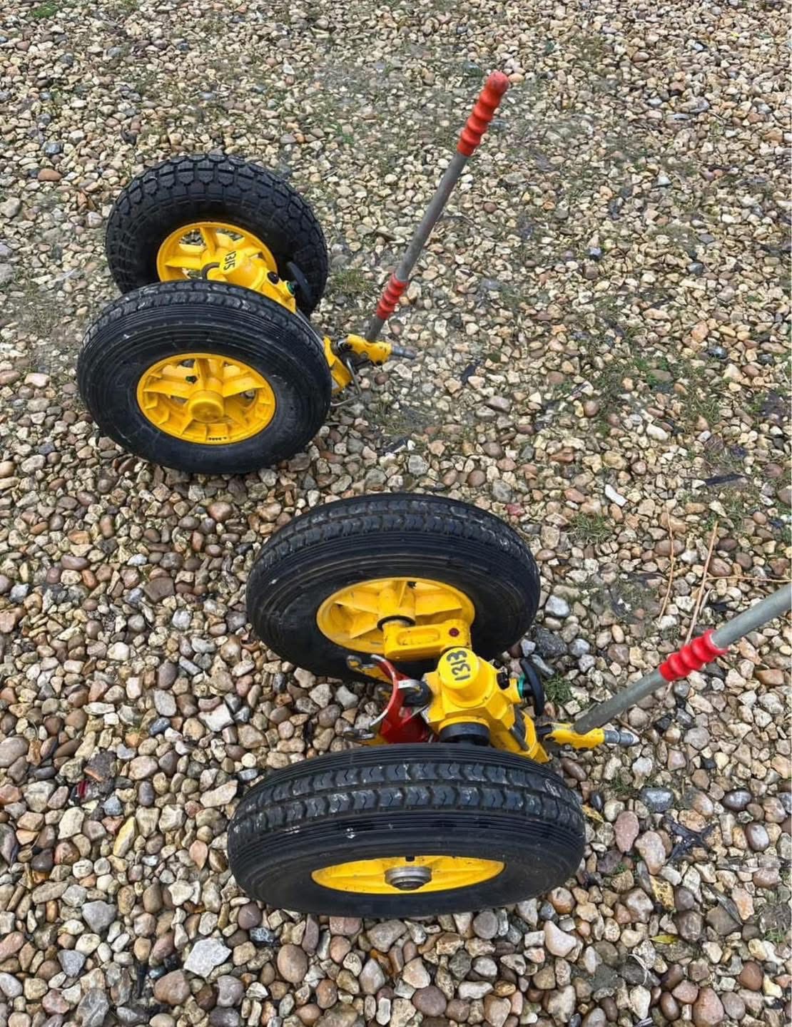 The condition of this set is excellent and fully functional. Each wheel rotates freely, attachment points are secure, and the structural frame remains intact and uncompromised. No operational defects or evidence of misuse are present. This makes the set appropriate for immediate integration into hangar operations, maintenance departments, or private helicopter facilities needing dependable handling tools.
