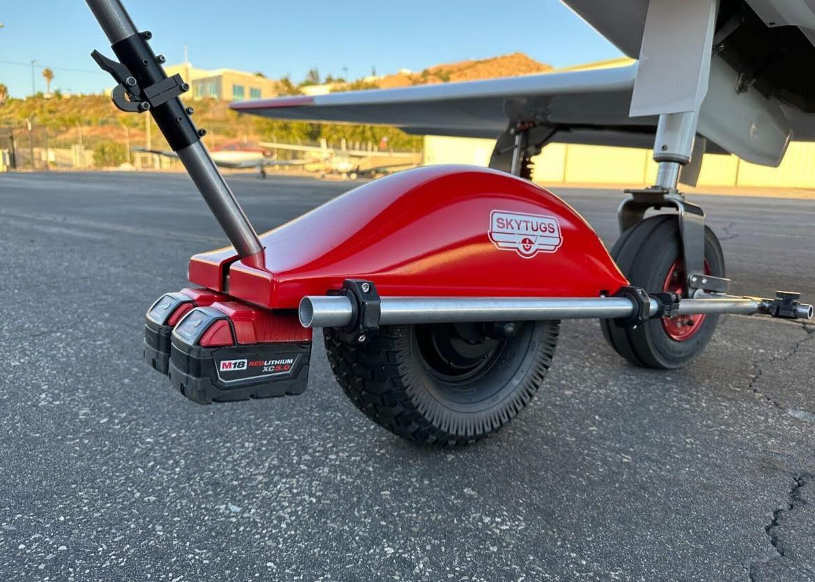 SkyTugs uses a clean and efficient electric drive system powered by two Milwaukee M18 batteries (not included). This approach eliminates the hassle of fuel, oil, fumes, cords, and heavy built-in battery packs. Instead, you get a lightweight system that’s easy to maintain and practical to operate. SkyTugs Electric Aircraft Tug | Affordable Aircraft Parts